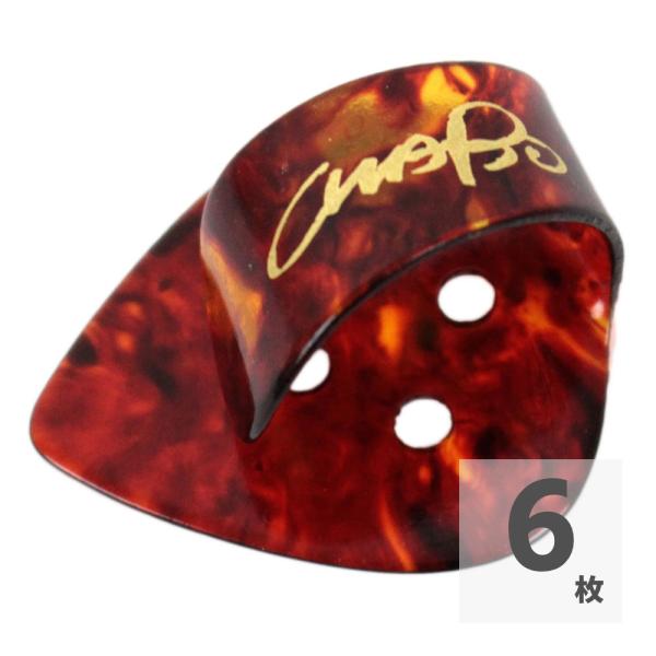 サムピックはトミーエマニュエルやフィンガースタイルのギタリストに好まれて使われますね。名の通りサム(親指)に装着して本来親指で弾くフレーズを装着したピックで弾く。